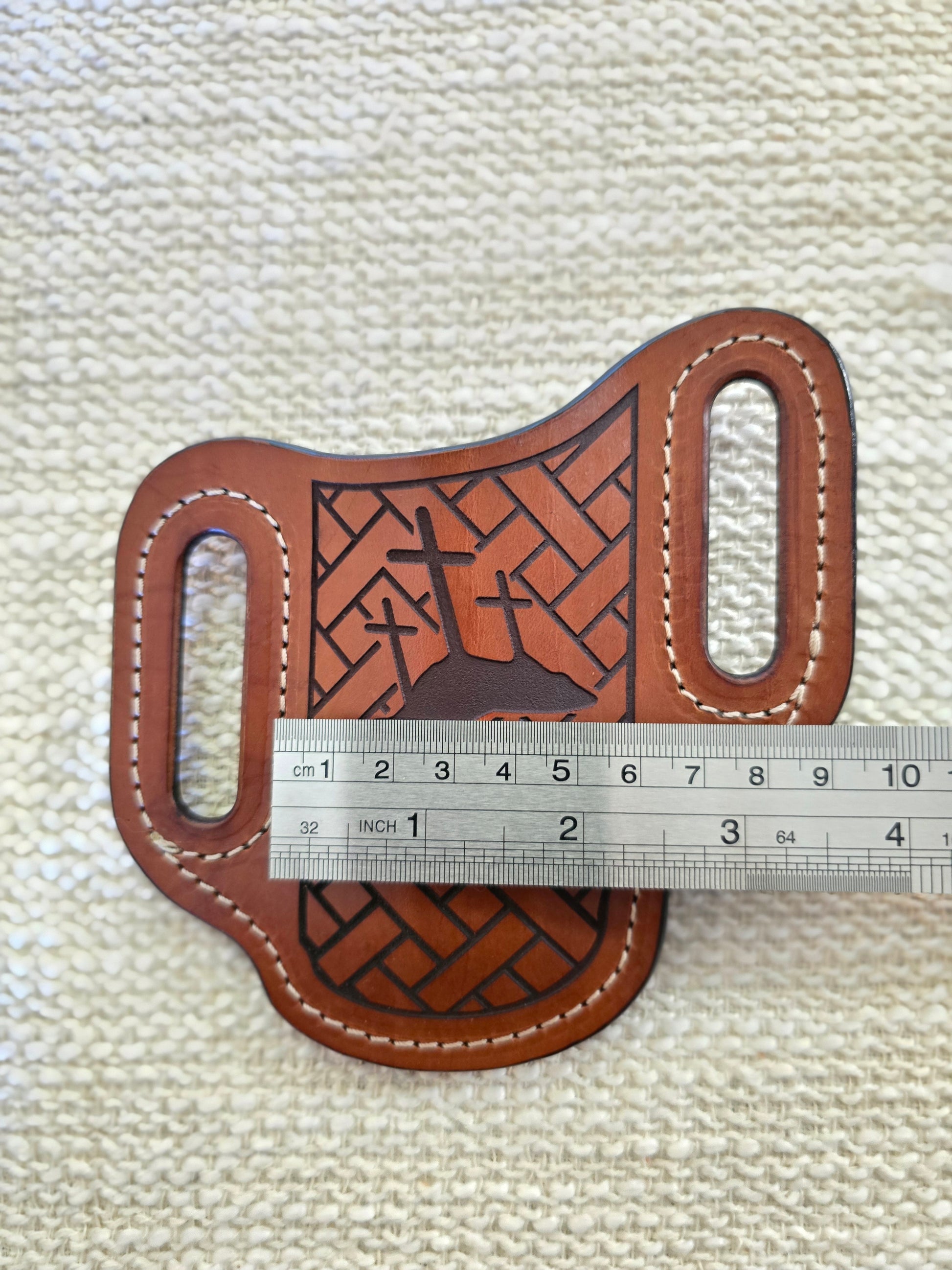 Handcrafted Leather Folding Knife Belt Slide – Three Crosses